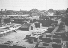 Our last destination was Sravasti. Buddha spent many years here and gave many sermons. Buddha spent 23 summers here; it is the place where Buddha spent the most time, and he presented most of the sutras here. Many attained their arhatship here. But what is Sravasti now? It is a bare piece of land in ruins. At one time there were many houses and viharas, but most of them were destroyed when the Moslems got to India. It's only recently that some of the original foundations were unearthed. Basically, what we saw were ruins.